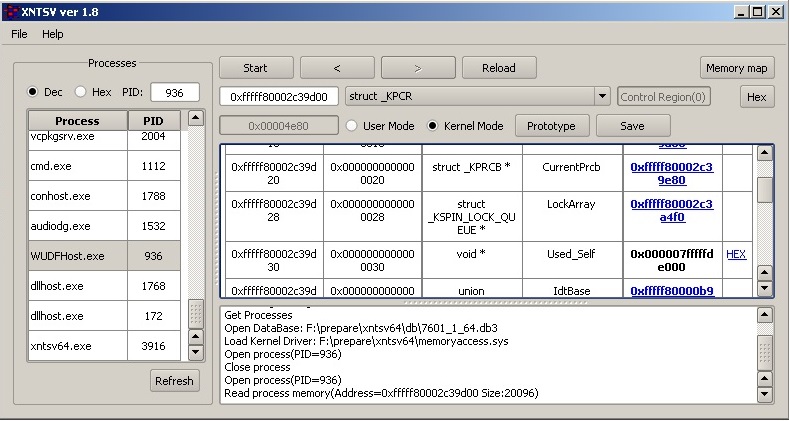 XNTSV je užitečný nástroj, který Vám umožní zobrazit podrobné informace o struktuře systémových procesů OS Windows. Po spuštění programu uvidíte v levé části okna všechny spuštěné systémové procesy. Pro rozbor stačí zvolit jednotlivý proces a zmáčknout v programu tlačítko "Start". Rovněž je možné zobrazit i HEX informace. Zobrazené informace lze uložit do HTML souboru.