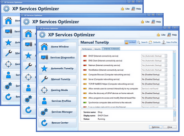 XP Services Optimizer je program pro optimalizaci a zvýšení úrovně služeb. Několik kliknutí vám pomůže přizpůsobit hlavní nastavení a vykonat některé důležité úkony, ať už se jedná o provedení kompletní systémové analýzy a diagnostiky, přepnutí do herního režimu, vytvoření profilu pro uložení specifických nastavení, stejně tak je možné obnovit systém do předchozí konfigurace.
