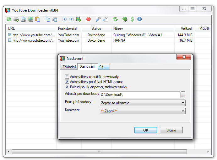 • Stahování videí z YouTube a dalších serverů