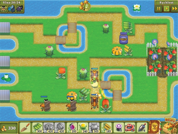 Budete se muset ubránit masivnímu pozemnímu útoku housenek. Následně váš záhon napadne letka včel. Svou obranu tak musíte umět vždy přizpůsobit dané situaci. V jednotlivých úrovních můžete získat také trampolíny, které odpálí nepřátelského brouka pryč z hrací plochy. Budete mít nástražné miny, jež dovedou zahubit celé zástupy nepřátel. Po zničení určitého brouka z něj může vypadnout diamant či jiný herní prvek, který vám pomůže při hře. Proto musíte vše dopředu plánovat a pečlivě zvážit každý sebemenší krok. Jste na tento nelehký úkol připraveni? Vydejte se bránit vaší zahrádku před nezvanými návštěvníky!