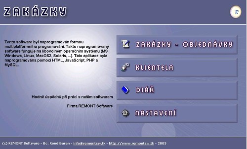 Evidence zakázek ve firmě a jejich stav. Naprogramováno v PHP a MySQL. Pro správný chod je třeba mít v počítači nainstalový Apache, PHP a MySQL server. Standard pro tento program je PHPTriad 2.2.1, který lze stáhnout z nasich WWW stránek v sekci "PODPORA" po názvem "RUNTIME".