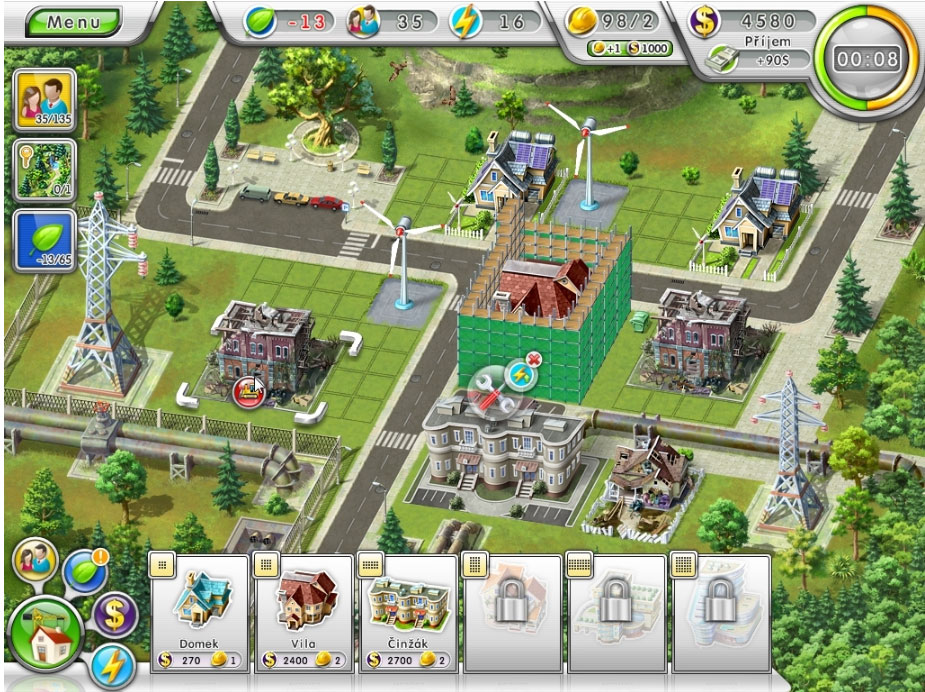 Proměňte krůček po krůčku každou zaneřáděnou čtvrť v ekologicky čistou oblast. V každé úrovni na vás čeká jiný úkol. Stavte nová a opravujte starší obydlí, demolujte nepohodlné stavby. Vydělávejte na pronájmu Činžovních domů a z utržených peněz zrenovujte zanedbané parky. Vybudujte svépomocí luxusní vily. To vše musíte stihnout pekelně rychle. Dříve, než vám vyprší časový limit. Jednejte rychle a čiňte správná rozhodnutí. A možná se dočkáte i bonusové úrovně! Pusťte se do práce, starostko!