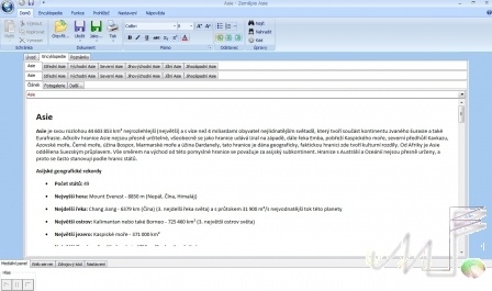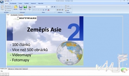 Nová encyklopedie Zeměpis Asie 2 přináší naprosto přepracované prostředí ve stylu Office 2007 a zjednodušení při prohlížení encyklopedie. Nyní je sice encyklopedie více závislá na internetu (hodně materiálu se nachází na našem portálu), ale instalační balíček se zmenšil z 500 MB na 19 MB.