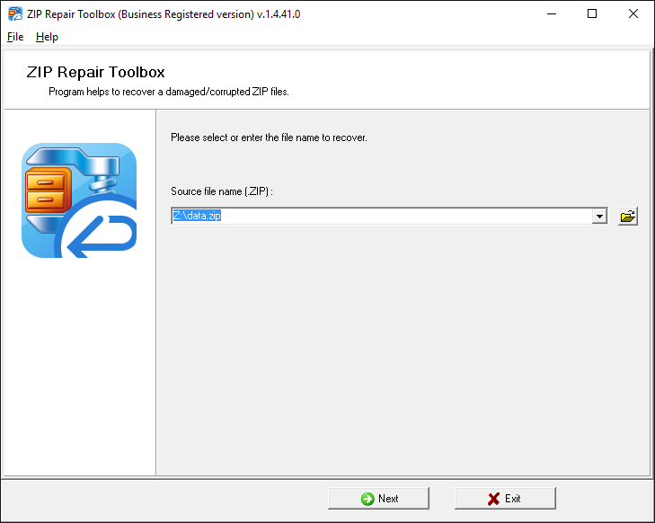 ZIP Repair Toolbox je nástroj pro záchranu souborů z poškozených ZIP archivů.Spolupracuje se všemi typy ZIP archivu včetně samorozbalovacích ve formátu EXE. Podporovány jsou i ZIP archivy o velikosti větší než 2 GB.