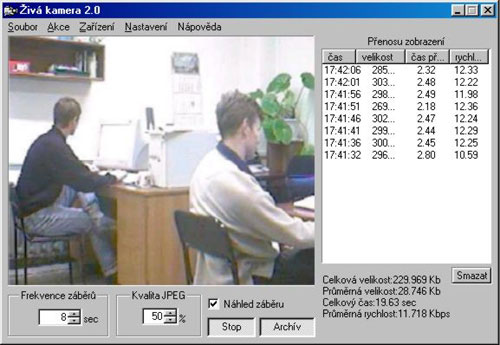 Program živá kamera umožňuje uživateli lehce, bez zvláštních vědomostí, uspořádat a vést "živé" web-vysílání, dokonce i při nízké rychlosti modemu (14400 - 28800 kb/s). Může sloužit i na hlídání objektů nebo? přední funkcí programu je reakce na pohyb a následné posílání obrazové informace na internet. Vše je v češtině.