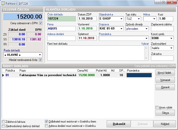 Detail produktu ZK Faktury | |